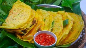Bánh xèo là một món ăn rất quen thuộc đối với tất cả mọi người, tùy vào từng vùng miền mà bánh xèo sẽ có hương vị khác nhau. Bánh xèo thơm lừng, khi cắn vào bạn sẽ nghe được tiếng “rôm rốp” của lớp vỏ bánh, sau đó sẽ cảm nhận được vị hơi mặn mặn và độ ngọt thanh của tôm, thịt và củ sắn.