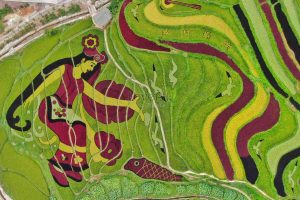 9/ Vẽ tranh trên đồng lúa: Mỗi năm tại vùng Yonezawa, phía bắc Nhật Bản, nông dân địa phương ăn mừng ngày thu hoạch bằng cách trồng lúa cùng các cây trồng khác thành những bức tranh khổng lồ rất thú vị.
